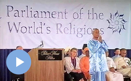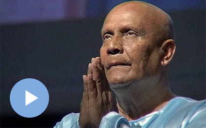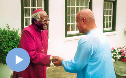 Nobel laureate Archbishop Desmond Tutu reads from ‘Peace’, a chapter of Sri Chinmoy’s book ‘The Jewels of Happiness’.